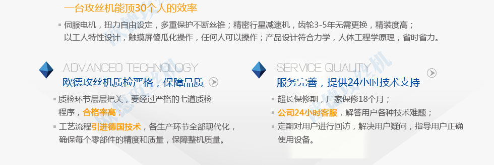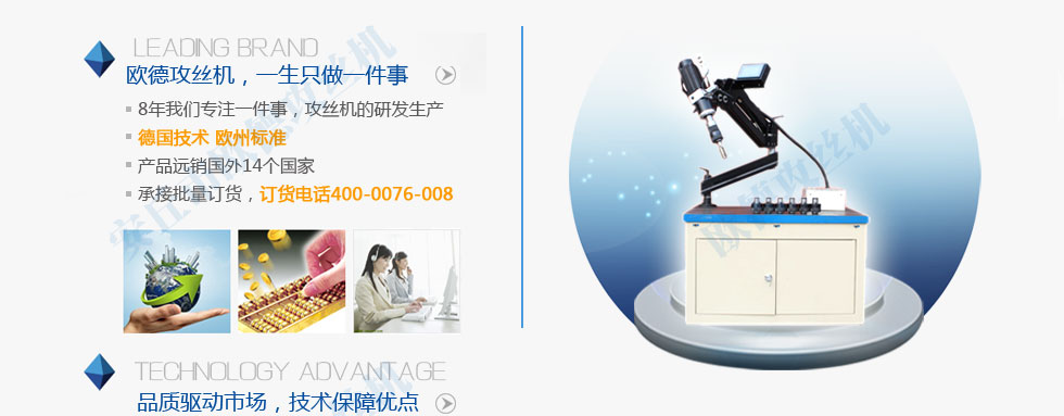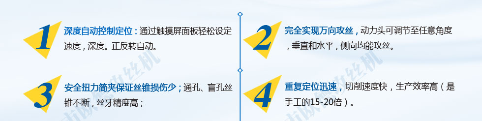 質(zhì)量求生存的方針,我們真誠(chéng)歡迎新老客戶選用我公司產(chǎn)品。公司注冊(cè)資金1000萬(wàn)元。公司以可靠的電動(dòng)攻絲機(jī)質(zhì)量和合理的價(jià)位打動(dòng)眾多消費(fèi)者。公司創(chuàng)造了一流的售后服務(wù)。我公司一如既往地堅(jiān)持數(shù)控攻絲機(jī)服務(wù)第一的宗旨。我公司以只有最好的精神指導(dǎo)各項(xiàng)工作大力塑造品牌。我公司新廠區(qū)擁有齊全的現(xiàn)代化生產(chǎn)設(shè)備。充分利用區(qū)域和行業(yè)優(yōu)勢(shì)。精誠(chéng)服務(wù)贏信譽(yù)是我們的鋼筋上絲機(jī)質(zhì)量方針。進(jìn)取精神是企業(yè)能與時(shí)俱進(jìn)的動(dòng)力和發(fā)展的源泉。